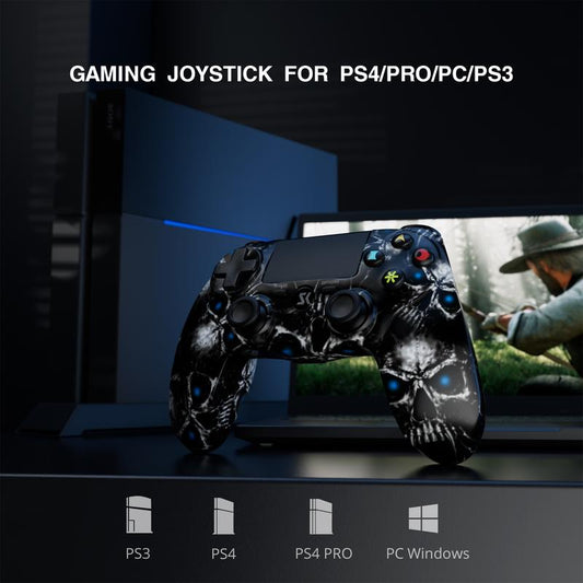 ISHAKO Wireless Game Controller for Ps4/Ps3/Android/Ios/Pc/Laptop, Gaming Accessories, Ergonomic Design, Double Vibration, One Key Sharing, with Touch Panel Function, Gamepad, PS415 Two-Sided Ghost