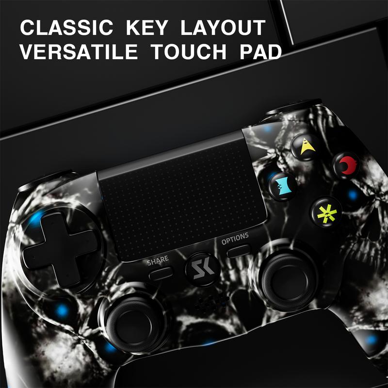 ISHAKO Wireless Game Controller for Ps4/Ps3/Android/Ios/Pc/Laptop, Gaming Accessories, Ergonomic Design, Double Vibration, One Key Sharing, with Touch Panel Function, Gamepad, PS415 Two-Sided Ghost